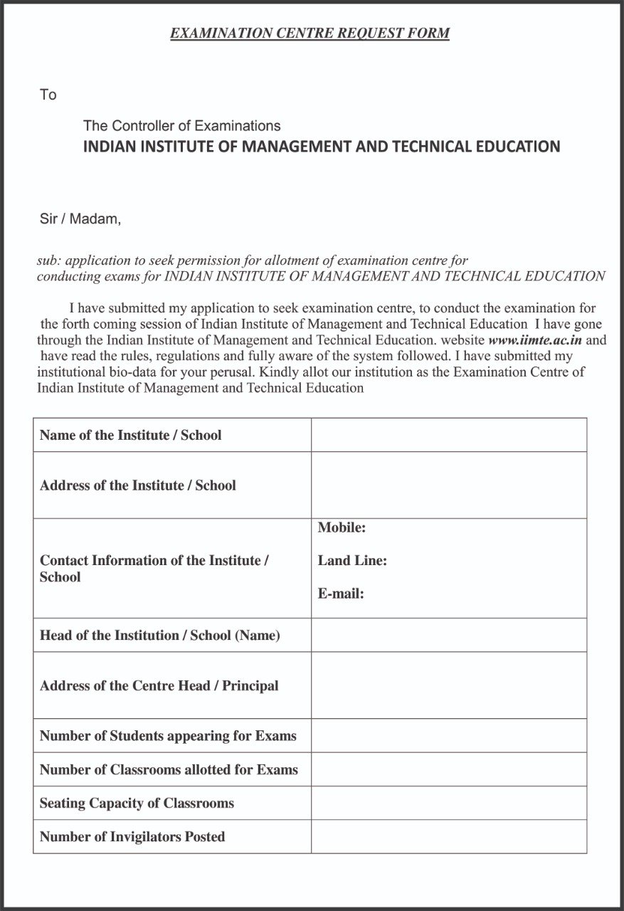 Examination Centre Request Form